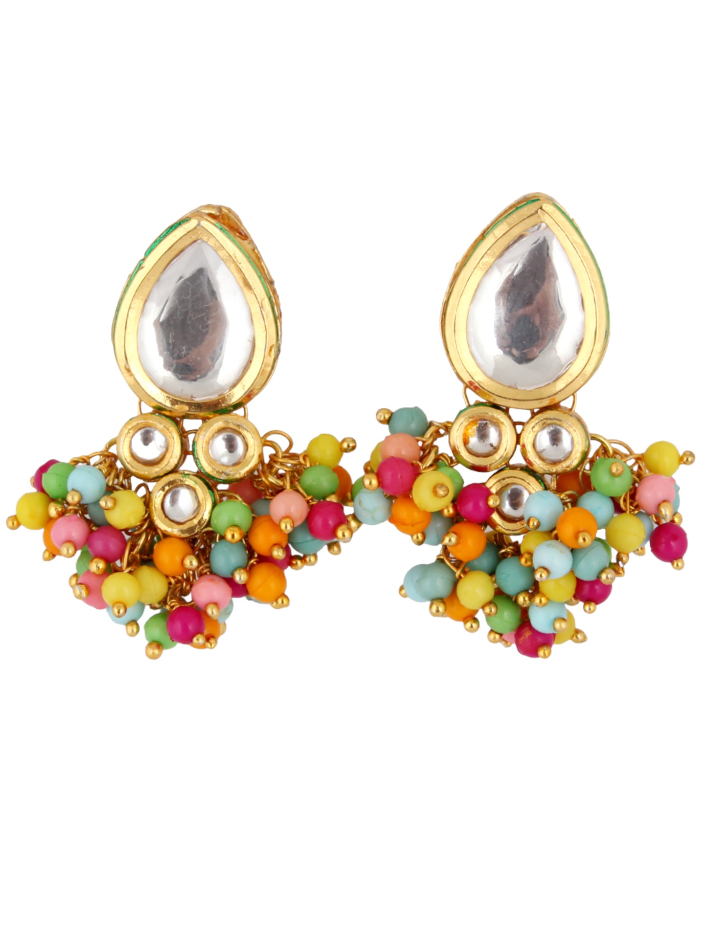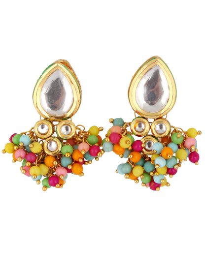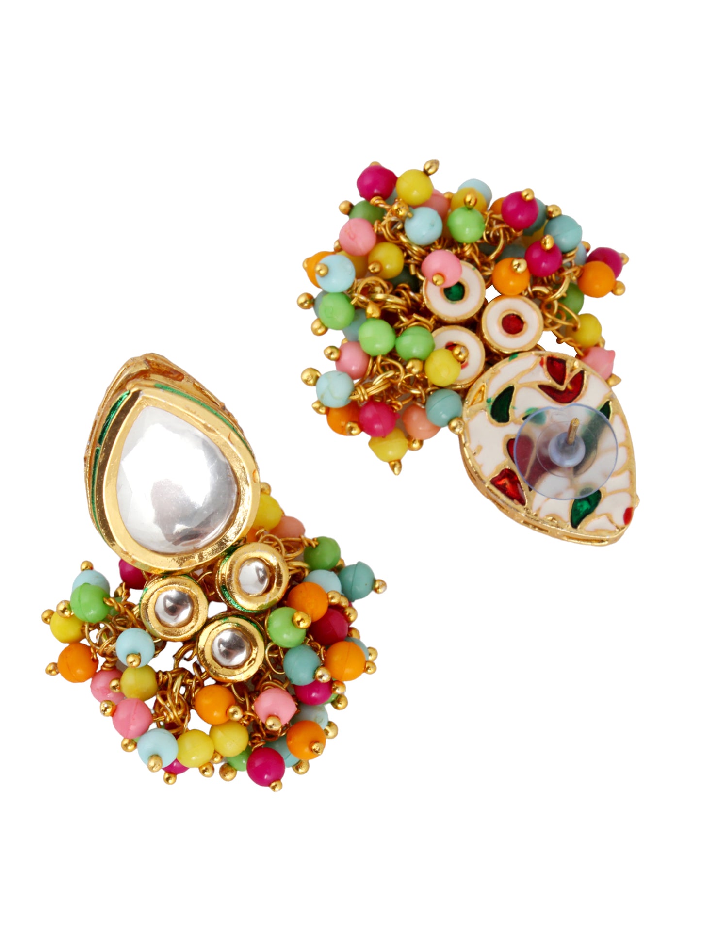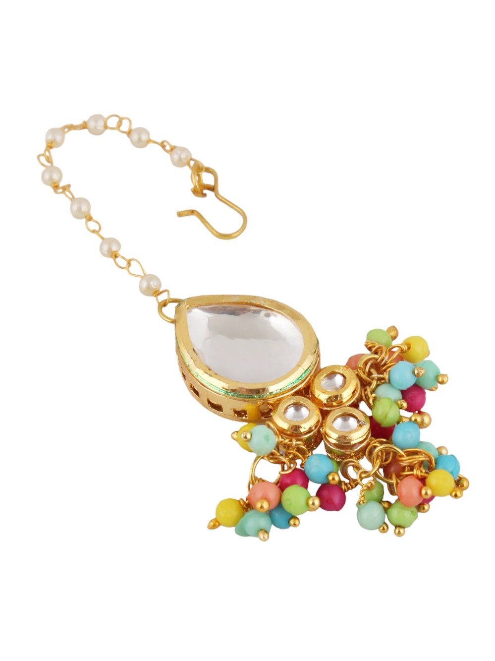 LUCKY JEWELLERY Back Meenakari 18k Gold Plated Multi Color Tika Earring Combo Uncut Big Faux Kundan Choker Necklace set (1122-J5SK-1698-MT) This stunning Necklace set from LUCKY JEWELLERY will certainly delight all the lovely Indian girls, who are ready to get married. This Necklace set includes matching earrings, one Necklace Set. Further, this set is studded with finest quality of coloured and white stones that render amazing look. |