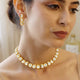 The Kundan Choker Necklace Set with Back Meenakari is a beautiful piece of jewelry featuring sparkling Kundan stones set in a gold-plated choker. The back of the necklace has vibrant Meenakari enamel work, adding colorful floral designs. This set usually comes with matching earrings making it perfect for weddings or special occasions. It’s a lovely mix of traditional style and modern elegance.