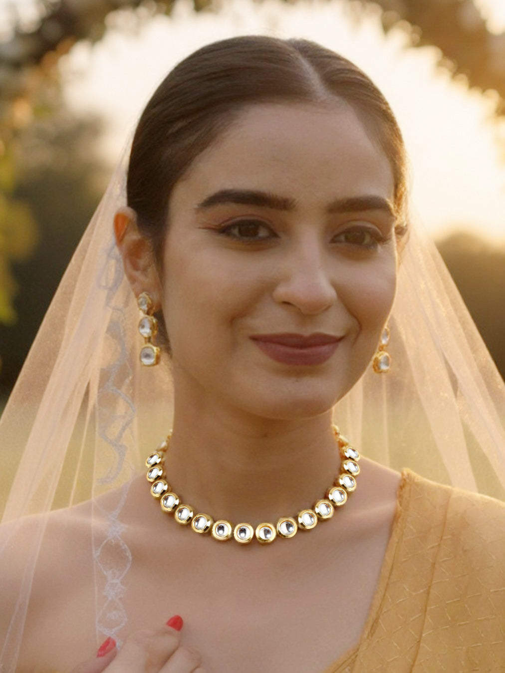 LUCKY JEWELLERY Back Meenakari 18K Gold Plated White color Uncut One Line Round Kundan Stone Necklace Set with Earrings Women & Girls The Kundan Choker Necklace Set with Back Meenakari is a beautiful piece of jewelry featuring sparkling Kundan stones set in a gold-plated choker. The back of the necklace has vibrant Meenakari enamel work, adding colorful floral designs. This set usually comes with matching earrings making it perfect for weddings or special occasions. It’s a lovely mix of traditional style and modern elegance. |