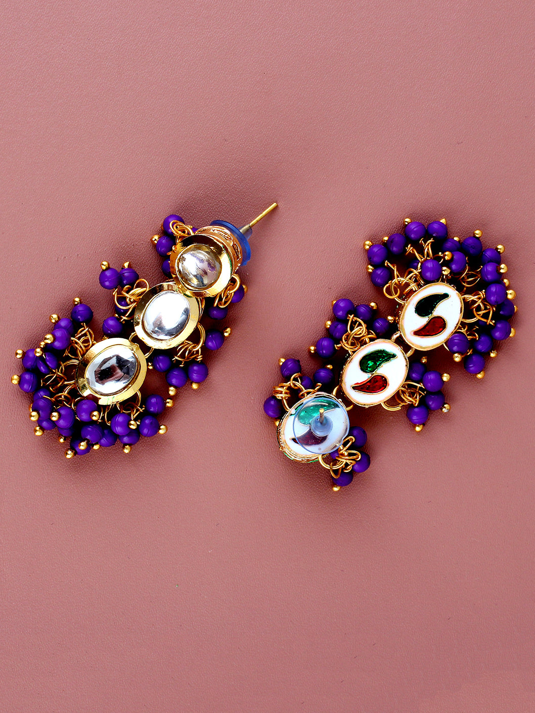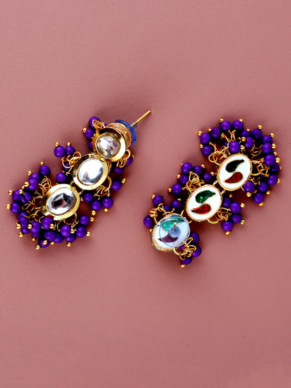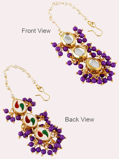 Lucky Jewellery Traditional Back Meena 18k Gold Plated uncut kundan Purple color Tika Earring set for Girls & women This stunning pair of Earring Tikka from LUCKY JEWELLERY will certainly delight all the lovely Indian Girls. Further, This Stunning Pair of Earring Tikka Set Is Studded with Finest Quality of Coloured & White Kundan Stones Which Are Coupled with Finest Array of Pearls, That Gives Render Amazing Look. Further More This Piece of Jewellery Is Decorated with Finest Craftsmanship in Meenakari Originating from The Roots of India. (Dimension:- Earrings Length:-8 cm, Earrings Width:-1.5 cm, Tika Length:-16 cm, Tika Width:-1.5 cm)