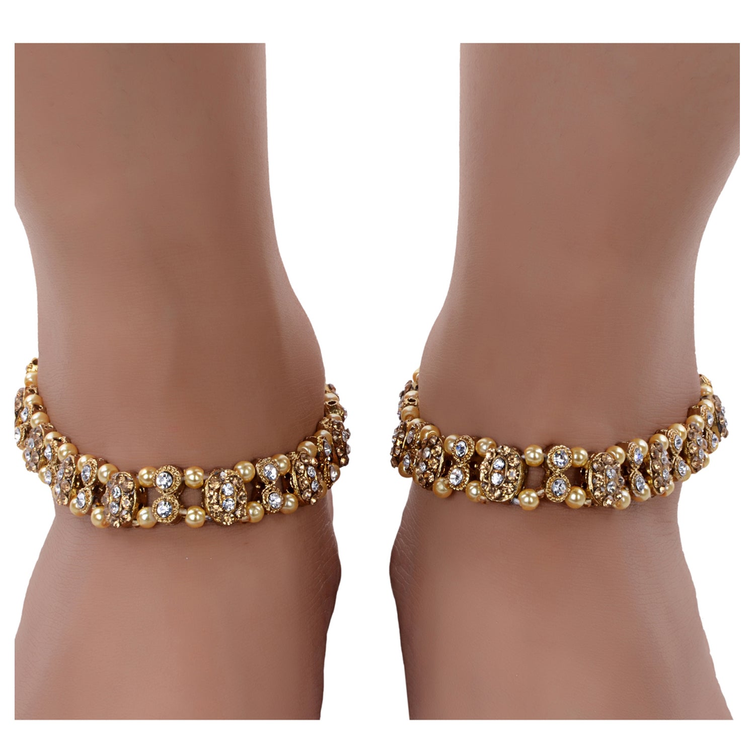 Lucky Jewellery Designer Golden Color Antique Polish Anklet Payal Pair Of One For Girls & Women