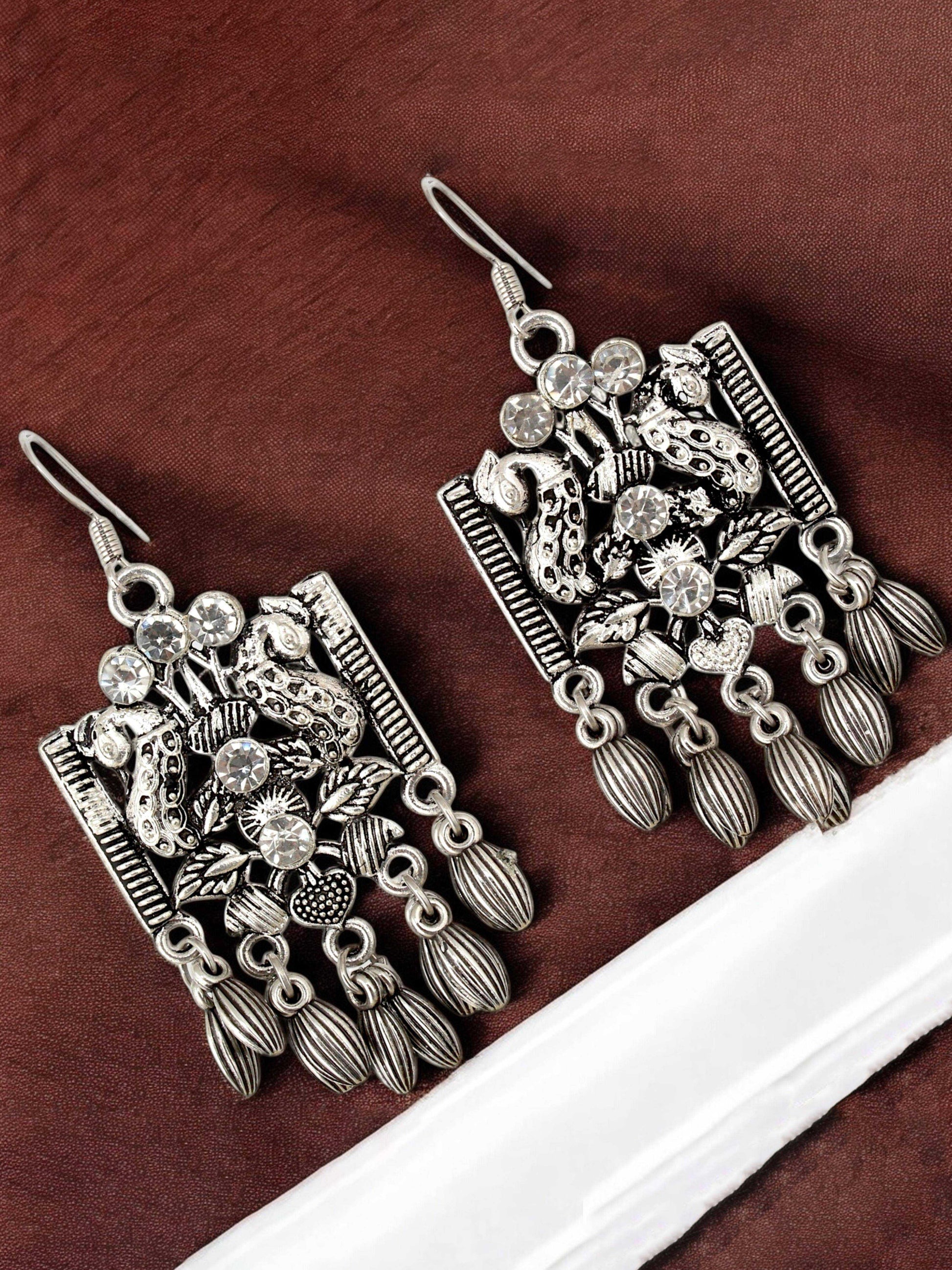 Elevate your festive style with this oxidised silver plated boho choker necklace set. Adorned with stones and beads, it comes with matching earrings, perfect for Navratri, Garba & Dandiya nights. Lightweight, trendy, and comfortable to wear, this jewellery set beautifully complements lehengas, sarees, and Indo-Western outfits for women and girls.