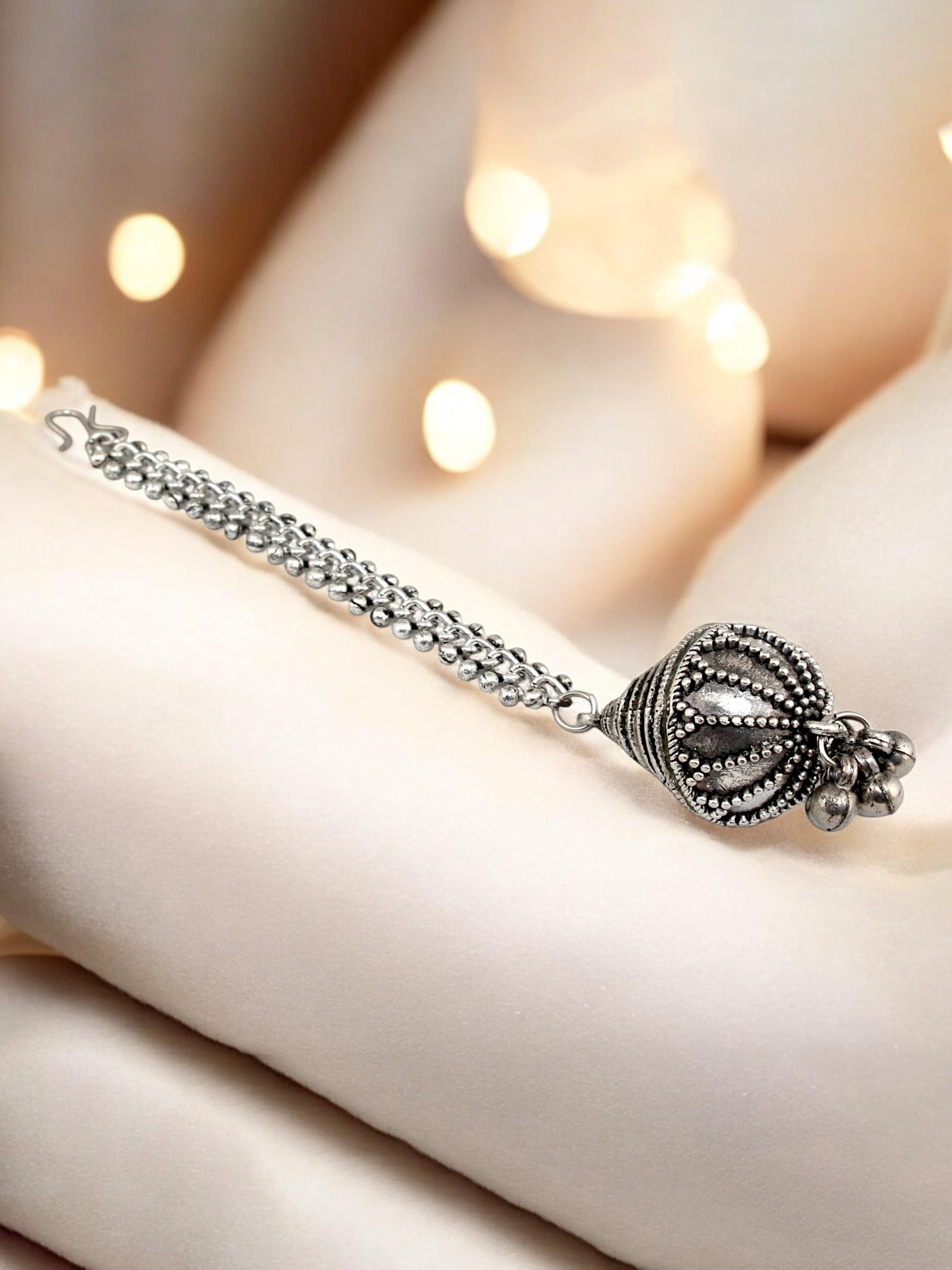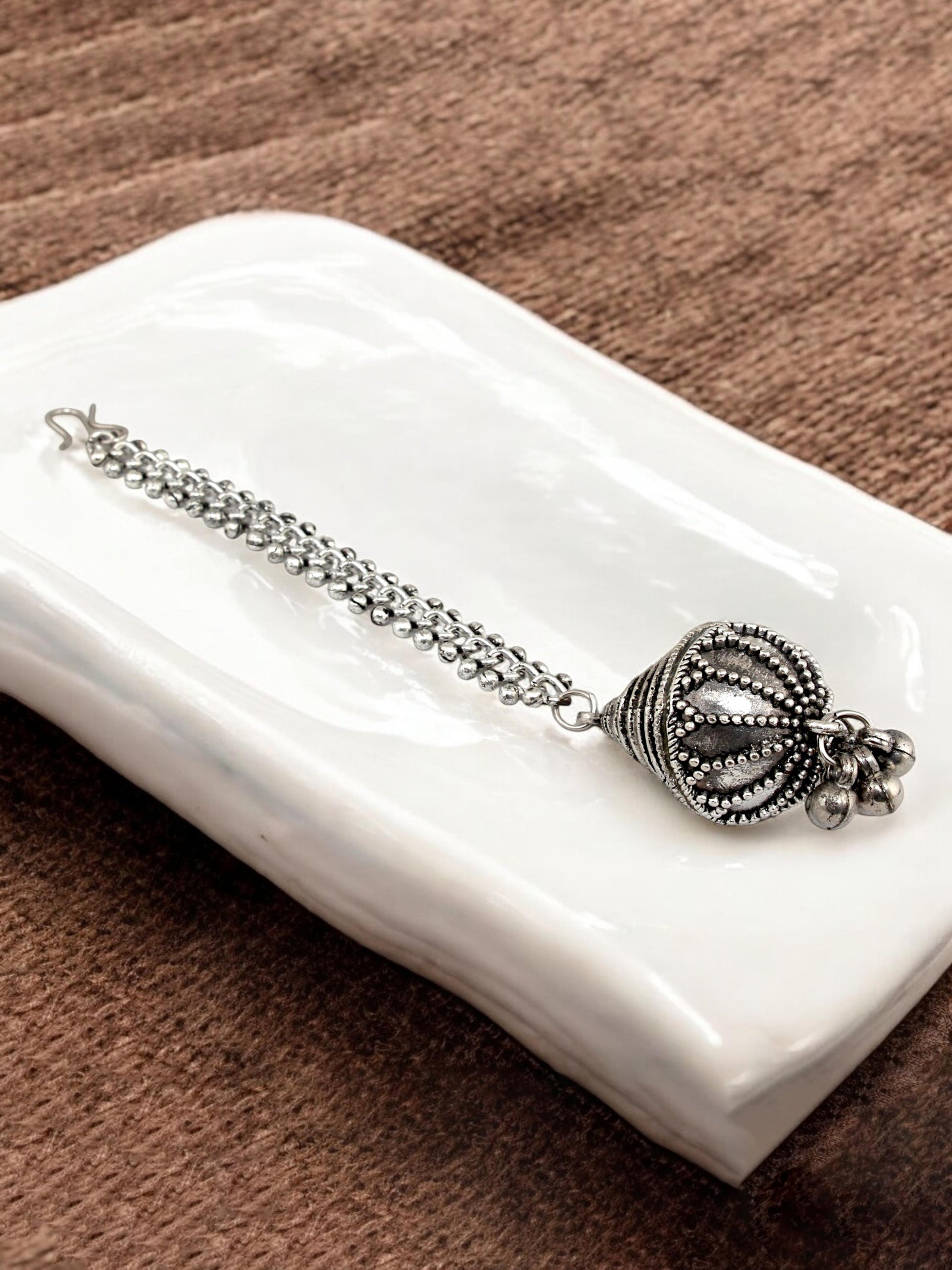 - Elegant Rajasthani Borla: Oxidised silver plated maang tikka in traditional Bodla style.