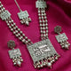 Oxidised Silver Plating Temple Jewellery Long Necklace Set for Women & Girls