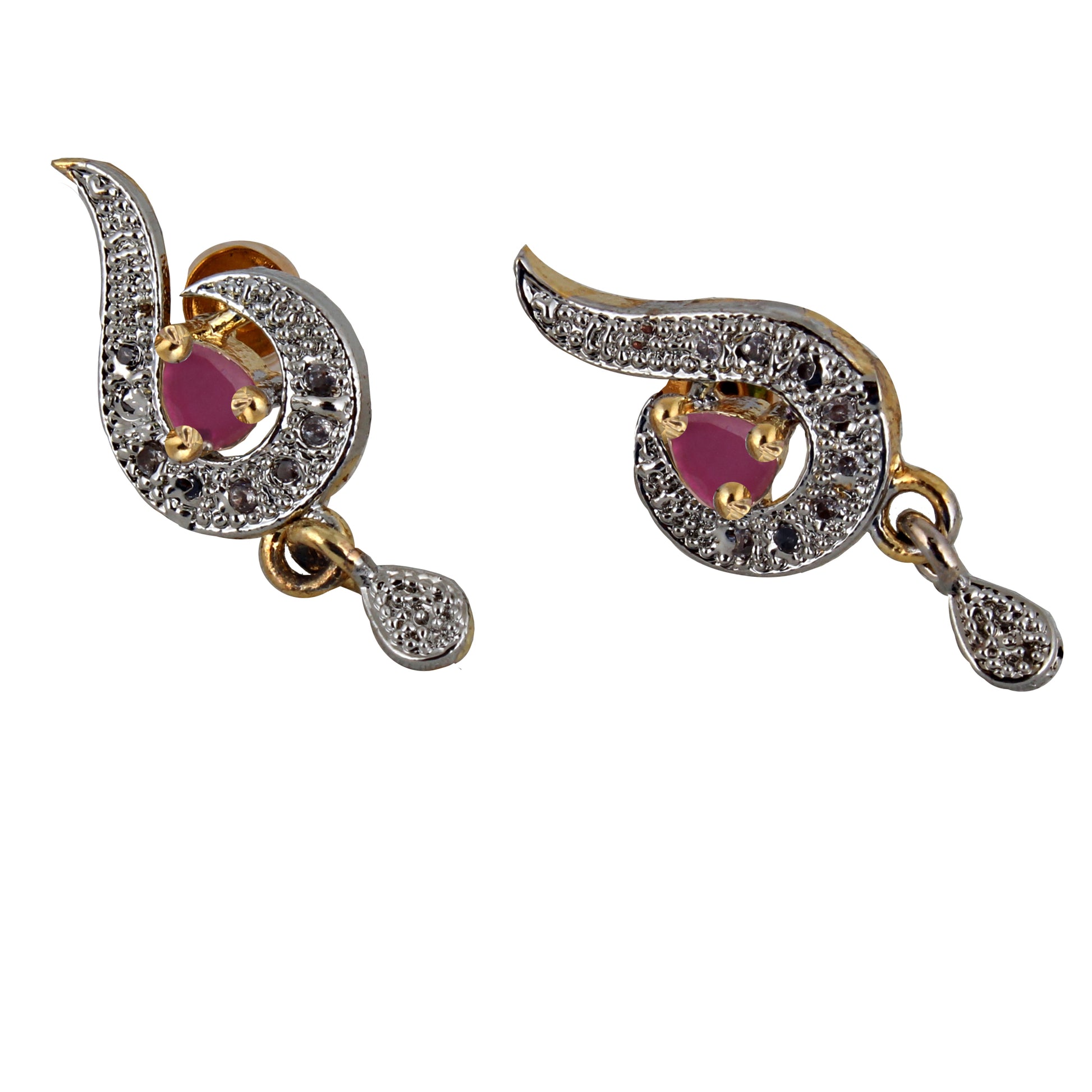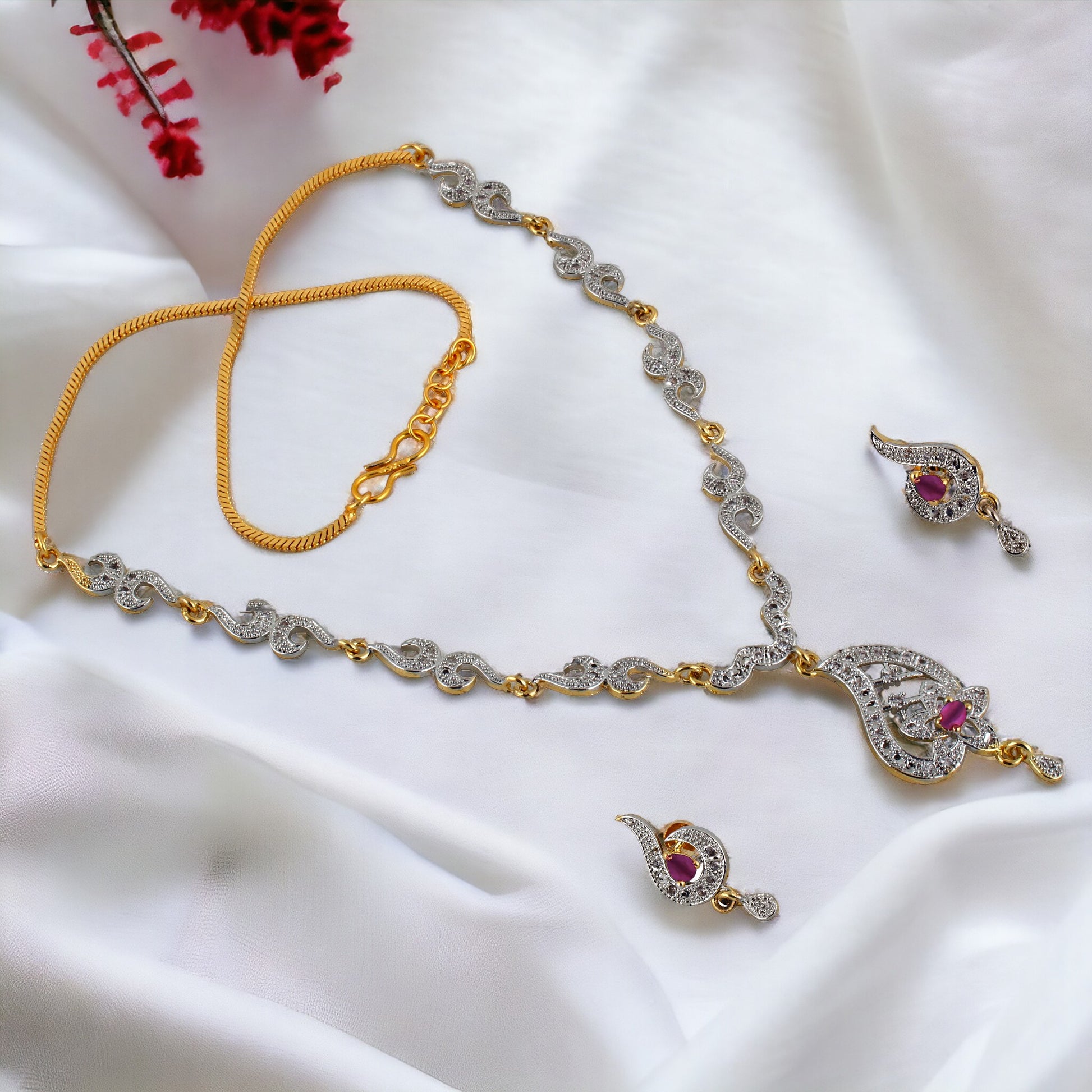 | 18K Gold Plated American Diamond (AD) Magenta color Necklace set with Earring For Girls & Women |