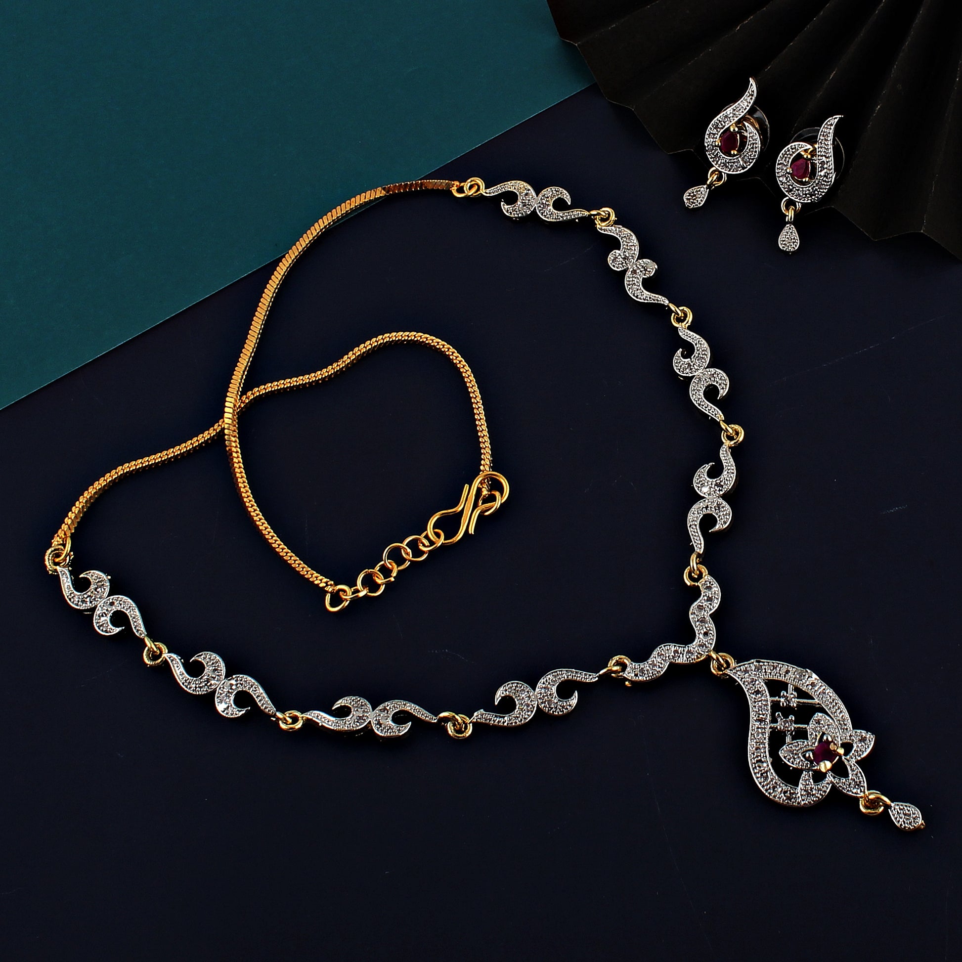 American Diamond (AD) Necklace set with Earring For Girls & Women