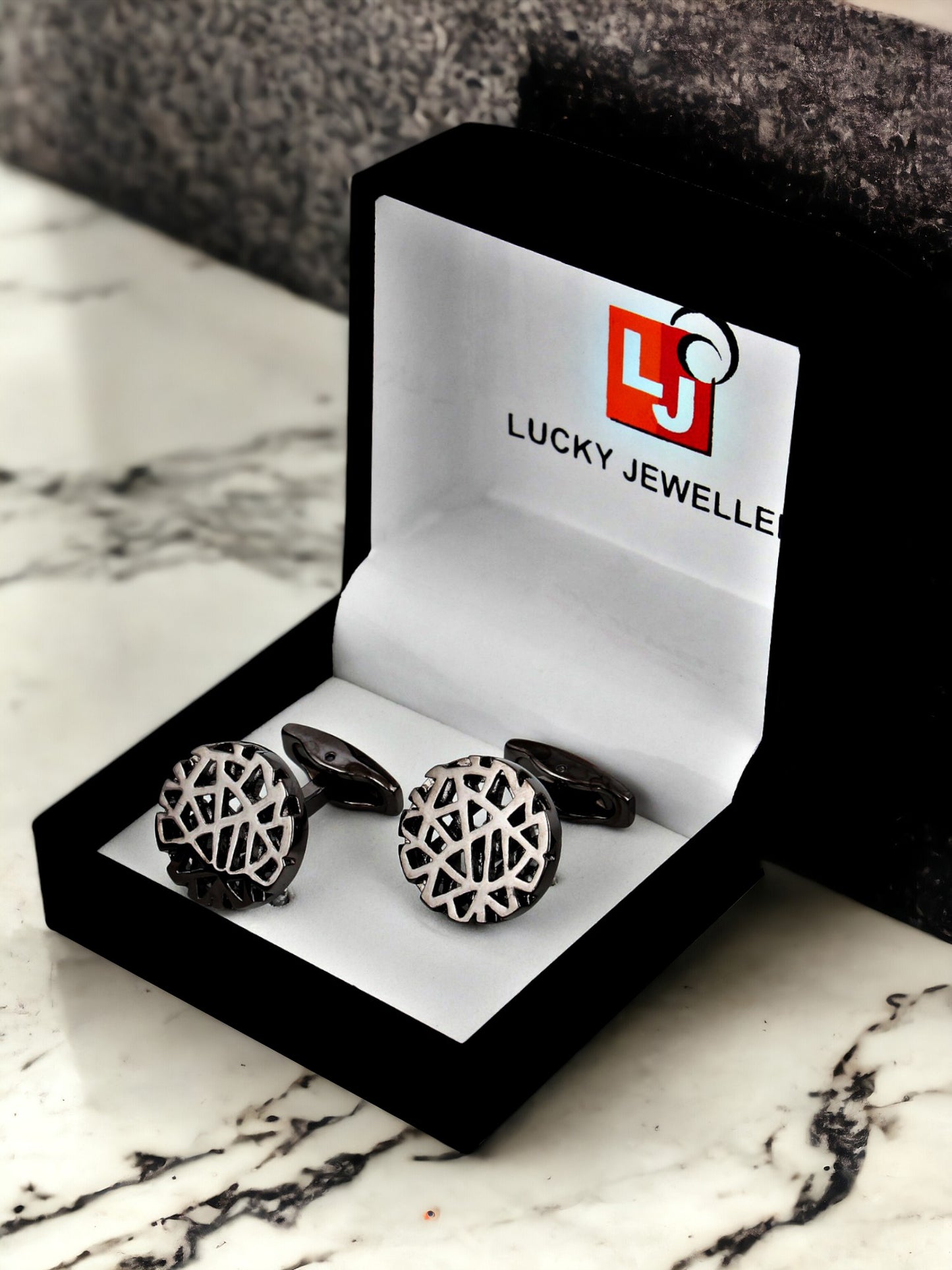 Lucky Jewellery Unique Men Jewelry Black Metal Polish Polish Round Shape Sleeve Button Formal Cuff Button Wedding Shirt Button, Suit, Blazer Cufflinks Pair Gift Set For Men (620-CHC4-1113-S) Cufflinks for men are small accessories worn on the cuffs of dress shirts. This piece of accessories come in various styles, shapes, and materials, such as metal, enamel, or even non-precious stones. These little gems add a touch of elegance and personality to a man's formal attire. This piece of accessories work by fastening the cuffs together, providing a secure and stylish closure. Whether you're dressing up for a formal event or adding a classy touch to your everyday look, cufflinks are a subtle yet significant detail that can make a big difference.