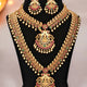 Embrace the timeless elegance of tradition with this stunning Gold Plated Temple Jewellery Double Necklace Set by LUCKY JEWELLERY. This exquisite set features a beautifully crafted choker necklace paired with a complementary long necklace, both adorned with intricate Goddess Lakshmi motifs symbolizing prosperity and divine grace. The matching earrings complete the regal look, perfect for festive celebrations, weddings, religious ceremonies, and cultural events.