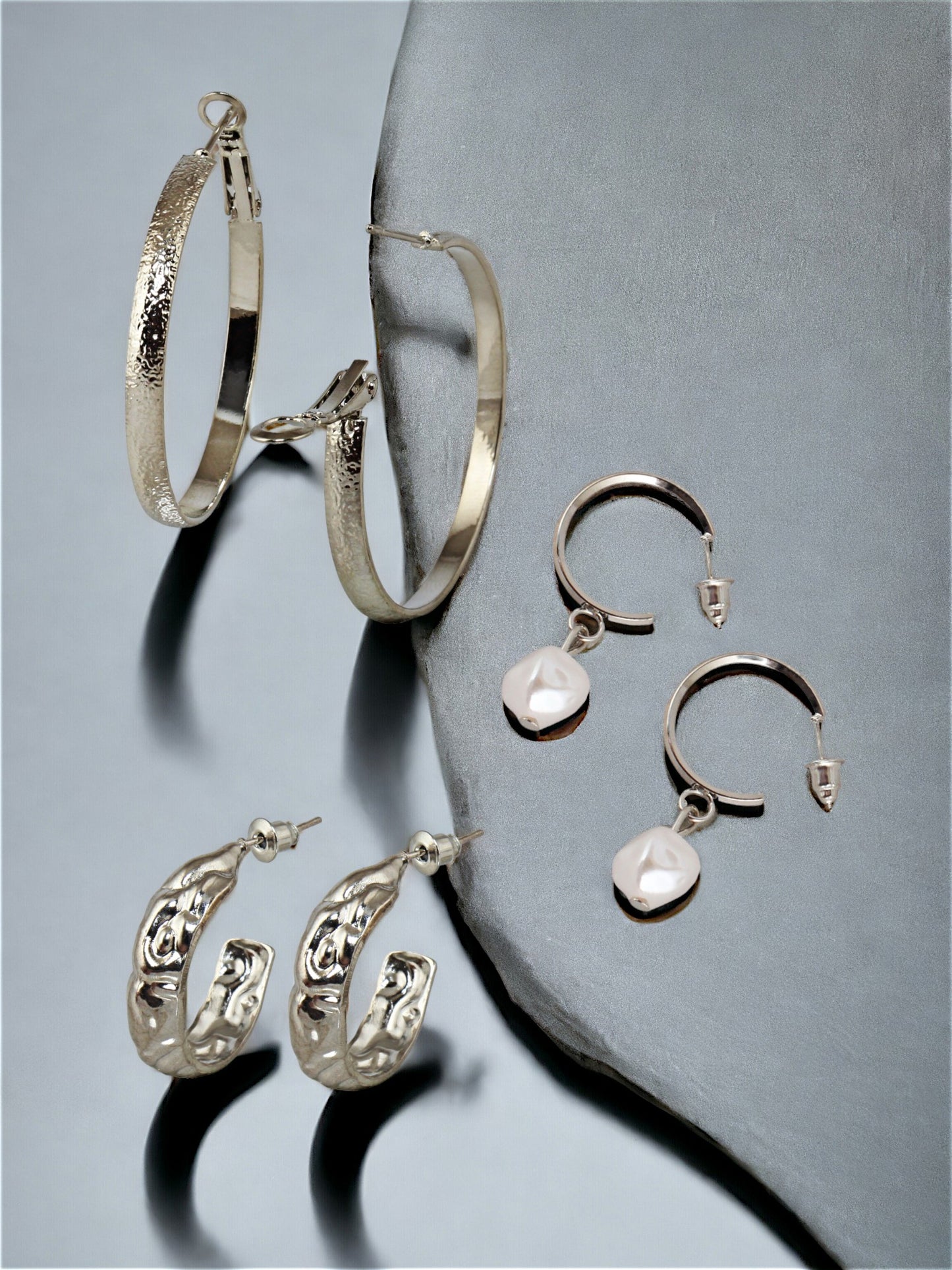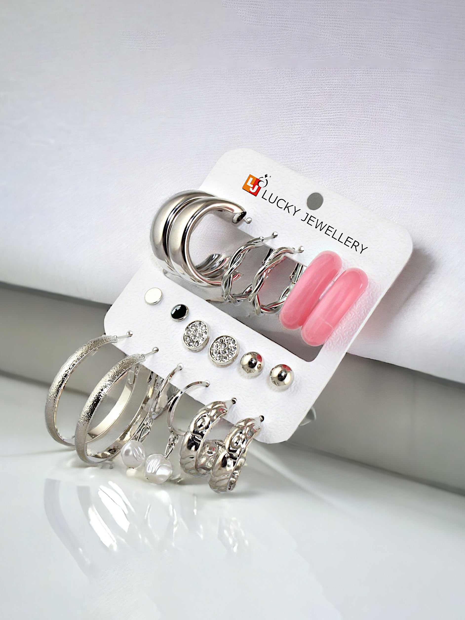 LUCKY JEWELLERY Fashion 9 Pairs Combo Set Of Latest Earrings Celebrity Inspired Stylish Trendy Silver Plated Earrings Stud Tops Earing and C Shaped Hoops Earring for Women & Girls (360-CHEX-1188-S-9) LUCKY JEWELLERY presents these 9 Pairs Of Stylish Designer Silver Plated Fancy Party Wear C Shaped Hoops and Dangle Drop Earrings with Stone Stud Tops for Women and Girls. A designer pair of new design Earings for Women and Girls that will make you feel like a Diva. The color complements all outfits & may be worn as a statement piece to any occasion. LUCKY JEWELLERY has huge collection of latest modern Fashion and Traditional jewellery accessories. LUCKY JEWELLERY is pioneer of Imitation jewellery for women and designer traditional jhumka / jhumki , ear studs, fancy tops, traditional earrings for women , fancy ear rings and american diamond hangings Earrings for women and girls. LUCKY JEWELLERY Fashion and Traditional Jewellery give true value for your money. Buy LUCKY JEWELLERY trendy, artificial and stylish jewellery for women. These are also ideal for birthday gifts for girls, Wife, wedding gifts and anniversary gifts. What You Get:- 18N (9 Pair). Combo Of 9 Pair Earrings. Combo Of 3 Pair Of Stud Earrings, 2 Pair Of Hoop Earrings, 3 Pair Of C Shaped Earrings & 1 Pair Of Dangle and Drop Earrings.