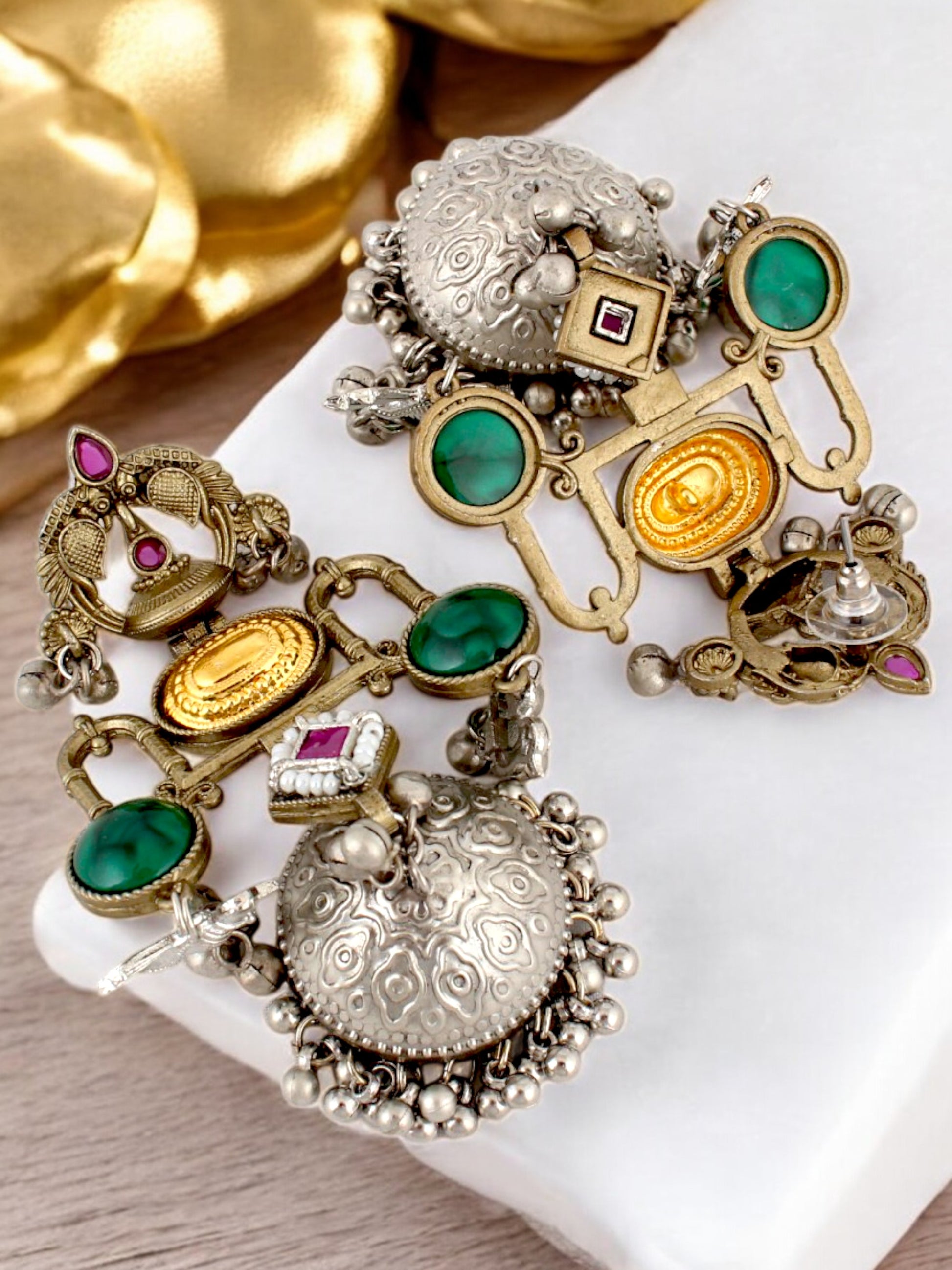 Trendy Celebrity Inspired Oxidised Silver Jhumki For Girls & Women |Black Metal Jhumkee Earring Set