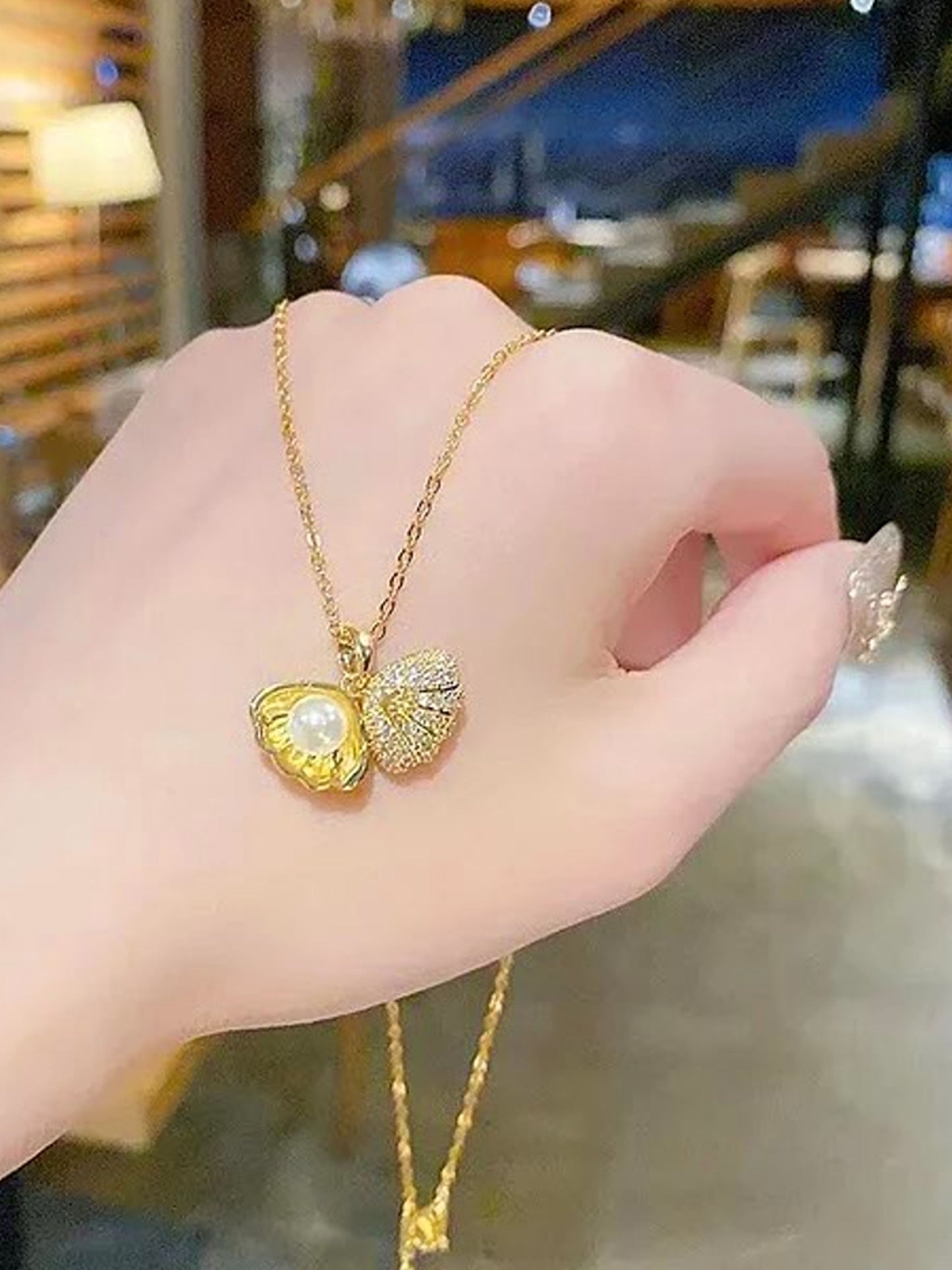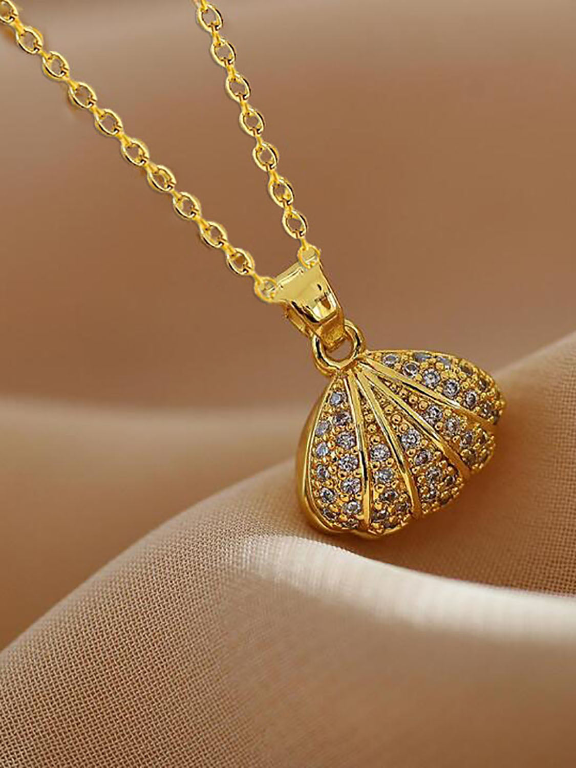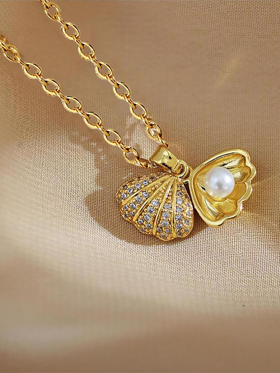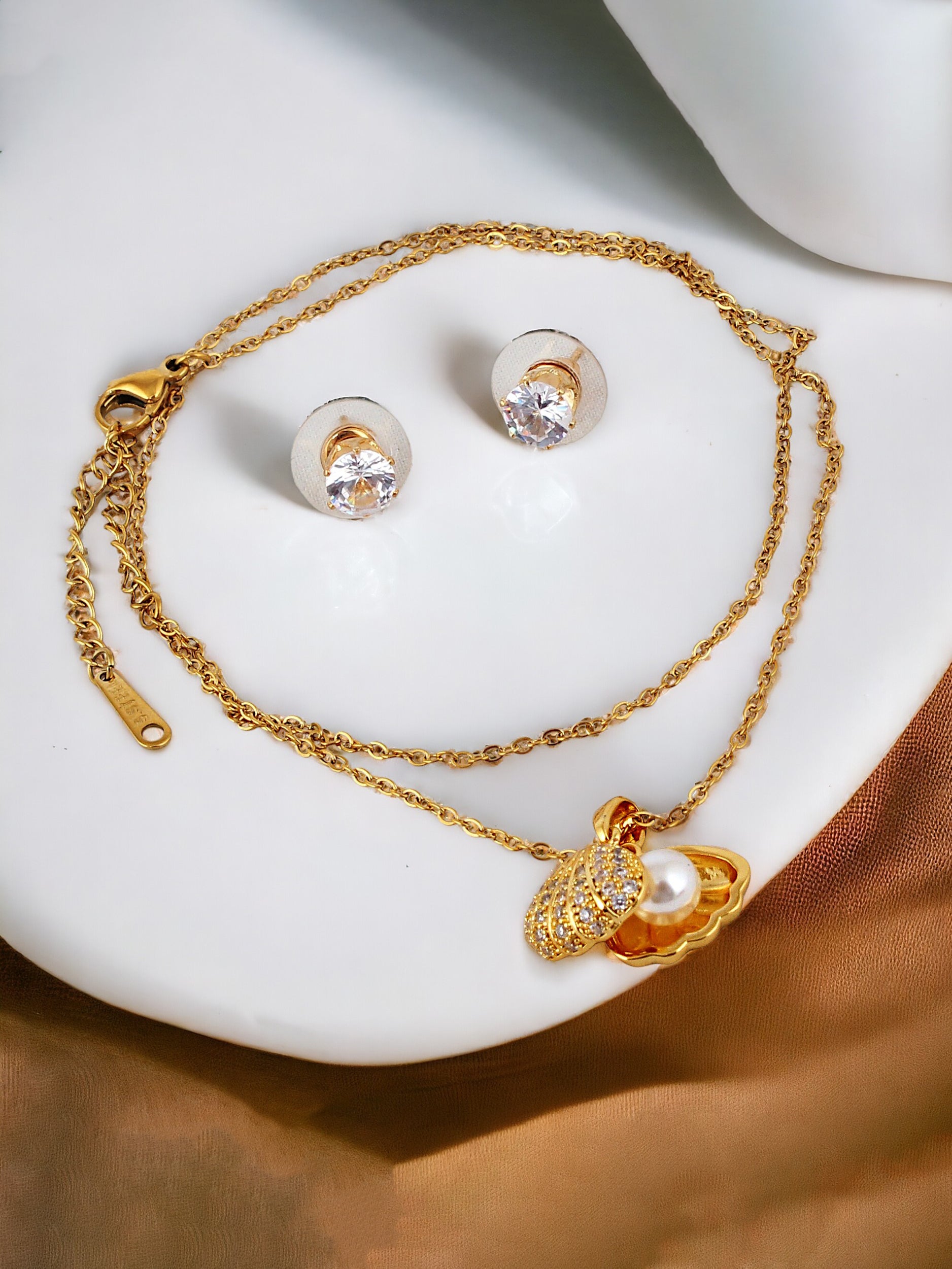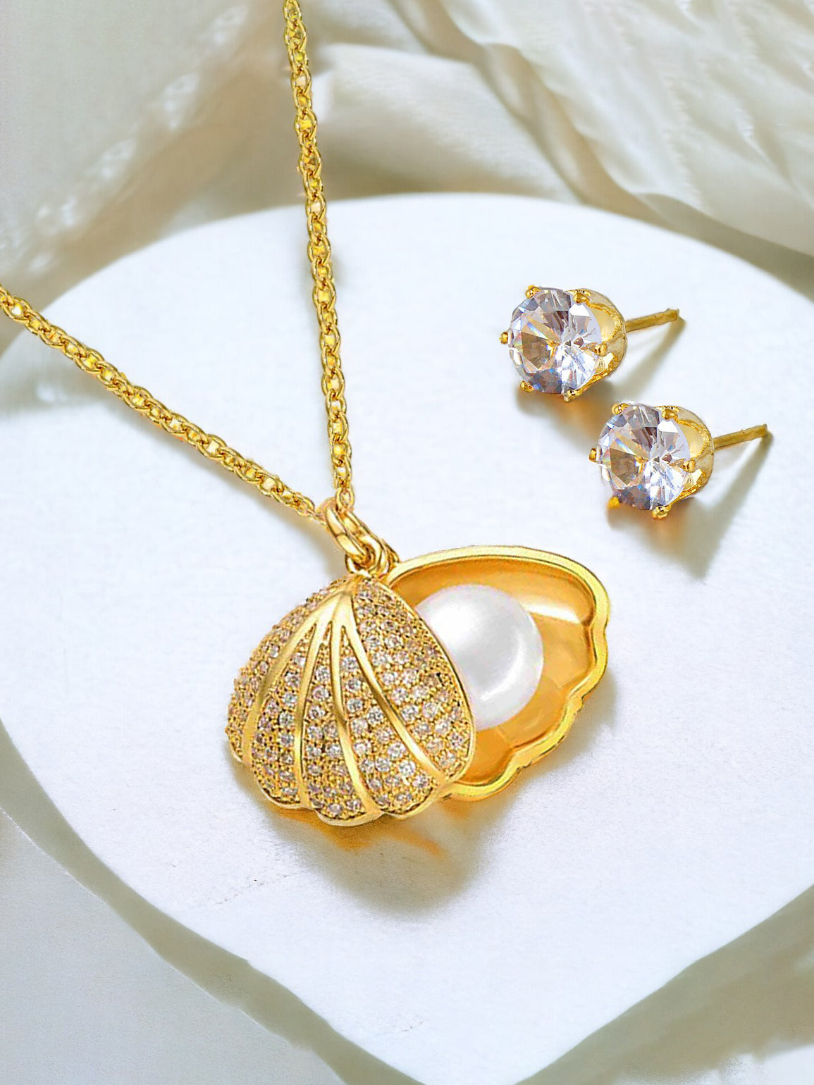 Trendy Gold Plated Pearl Shell Pendant Chain With Studs