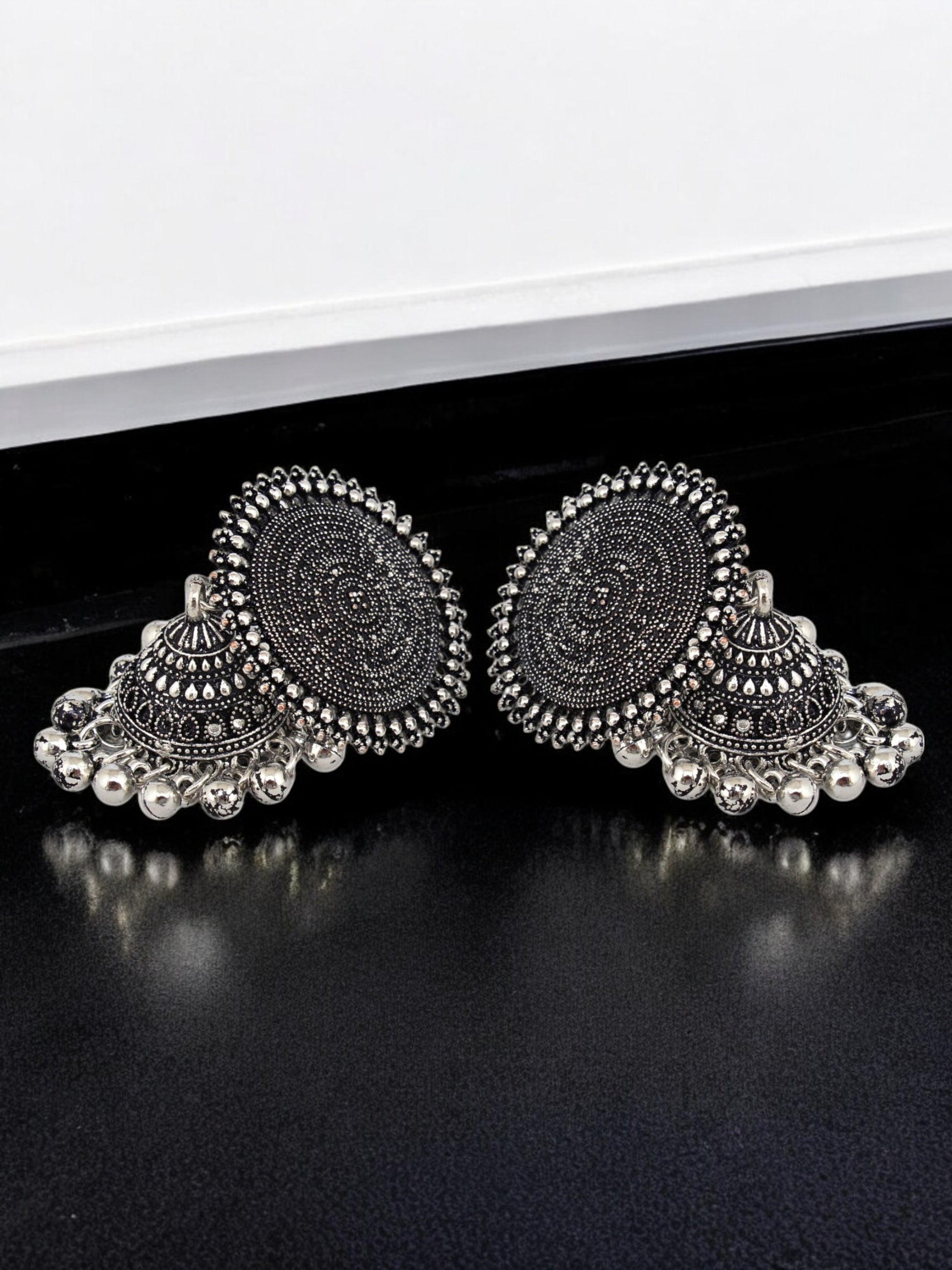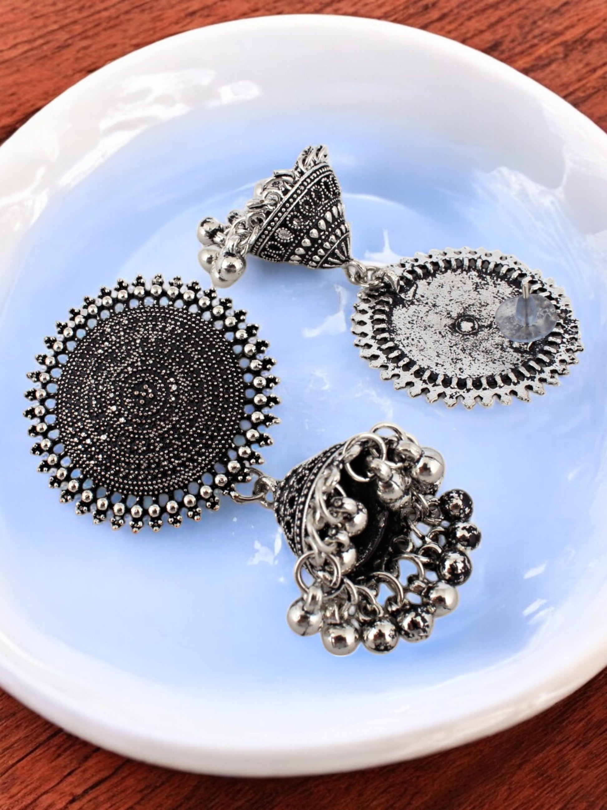 Trendy Oxidised Silver Plating Jhumki Earring For Women and Girls | Designer Earrings with Tasseled Ear Chain (271-TJO-2841)