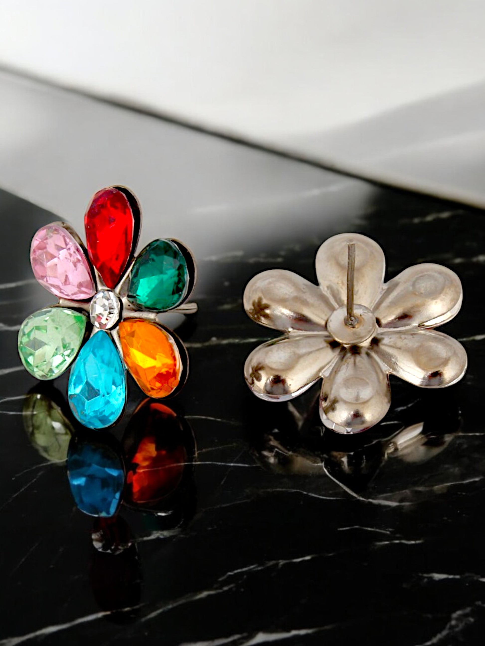 Trendy Unique Oxidised Silver-Plated Floral Choker Necklace with Multi Stone & Matching Earrings (158-TSO-2026-MT)