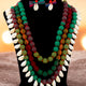 | Celebrate Navratri in style with our stunning Tribal Boho Necklace Set! This exquisite jewelry piece beautifully combines traditional tribal patterns with funky boho charm, fabric embroidery mirror choker making it perfect for girls and women who appreciate unique and stylish accessories. The necklace showcases intricate designs made of artificial shankh kaudi, cowrie tumbles, and other fancy materials, all beautifully tied together in a handcrafted style. Colorful tassels and charms add a festive touch to your Navratri ensemble. Whether you're preparing for Haldi, Mehandi, or the vibrant festivities of Durga Pooja, this set is ideal for any occasion. The matching earrings feature a lovely drop that dances gracefully with you as you participate in Garba or Dandiya. Crafted from non-precious metal, this jewelry set infuses your look with a pop of color and earthy vibes, making it a must-have for your celebrations. With its perfect balance of tradition and boho style, the Tribal Boho Necklace Set with Earrings is sure to elevate your festive attire. Embrace the spirit of Navratri with this eye-catching and distinctive jewelry set! |